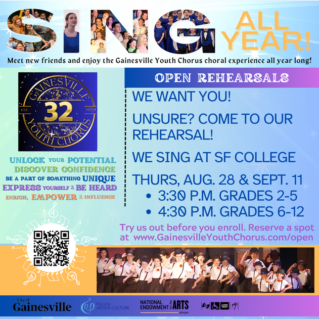 OPEN REHEARSALS on Thursdays, Aug. 28th & Sept. 11